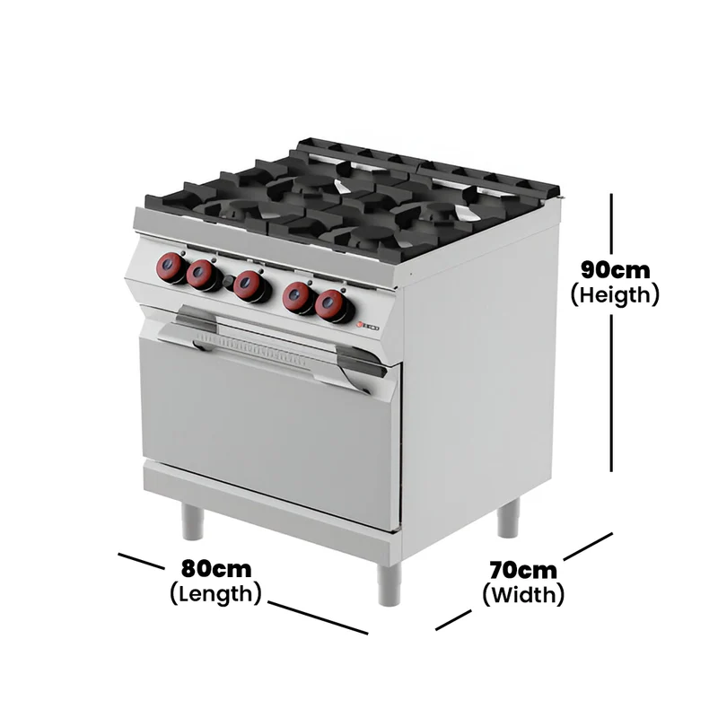 The Desco Gas Range with Cabinet is a professional cooking solution. With its 4 gas burners and oven, it provides high-volume cooking capacity and versatility. Its stainless steel construction ensures durability and easy cleaning. Perfect for restaurants, cafes, and food service establishments, this gas range offers reliable performance and efficiency.